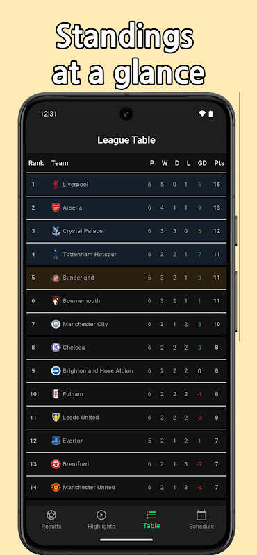 Alles over het Engelse voetbal in één app! Realtime wedstrijdresultaten