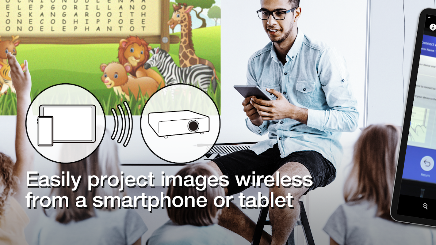 4. Sluit tot 50 apparaten aan op de projector, geef tot vier schermen tegelijk weer en deel uw geprojecteerde beeld met de andere aangesloten apparaten.