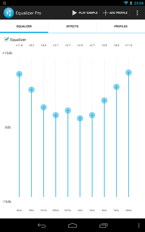 Improve your android device sound with 10 band equalizer.