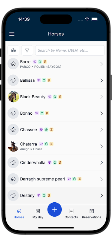 Met behulp van deze app kun je makkelijk zoeken op chipnummer of naam, om het paard te vinden. Krijg herinneringen wanneer een enting moet plaatsvinden, of wanneer er bijv. een afspraak met de hoefsmid gemaakt moet worden.