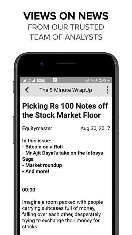 De Android-app van Equitymaster is uw vertrouwde bron voor meningen en meningen over beleggen in de Indiase aandelenmarkten.