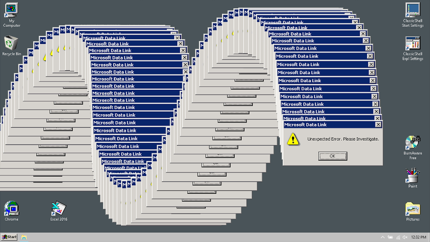 Windows error! Error Windows 98, as in the old days. Error Win 98 is nostalgia for all Win 98 users. Use the Error Win 98 to remember the youth and please all the fans of Windows 98.