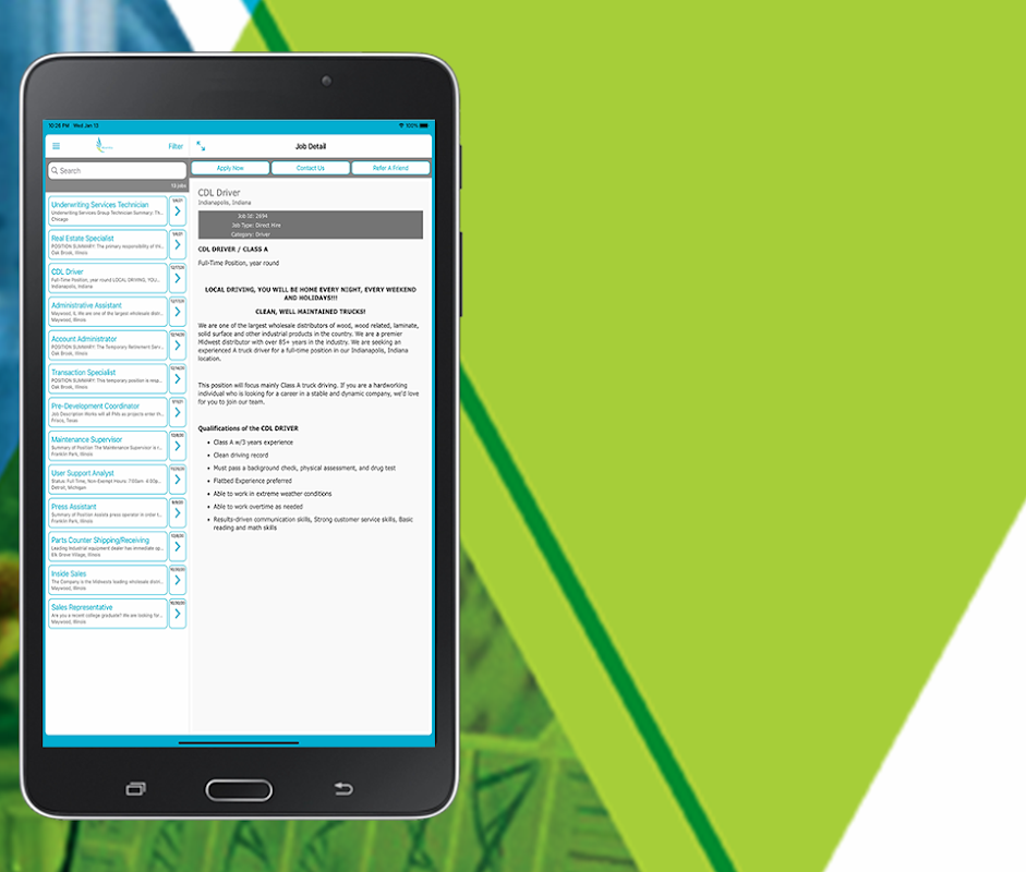 - Search, view, and apply to jobs
