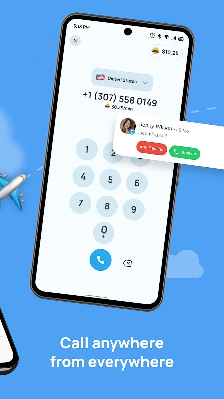 Met eSIMo Phone kun je overal ter wereld bellen en gebeld worden, een tweede telefoonnummer krijgen en in realtime sms'jes versturen. Alles in één simpele app met soepele prestaties en de beste wereldwijde tarieven.