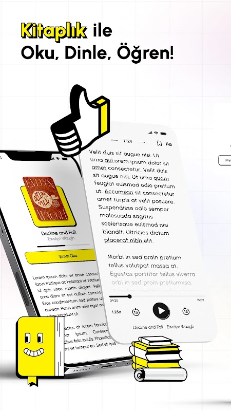 Woordoefeningen, een up-to-date woordenboek en veel boeken onderverdeeld naar niveau binnen de applicatie