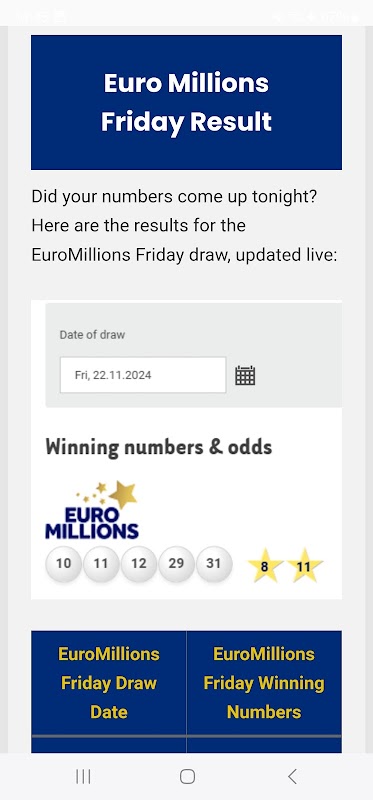 - Elke dinsdag en vrijdag onmiddellijke updates voor de EuroMillion-resultaten.