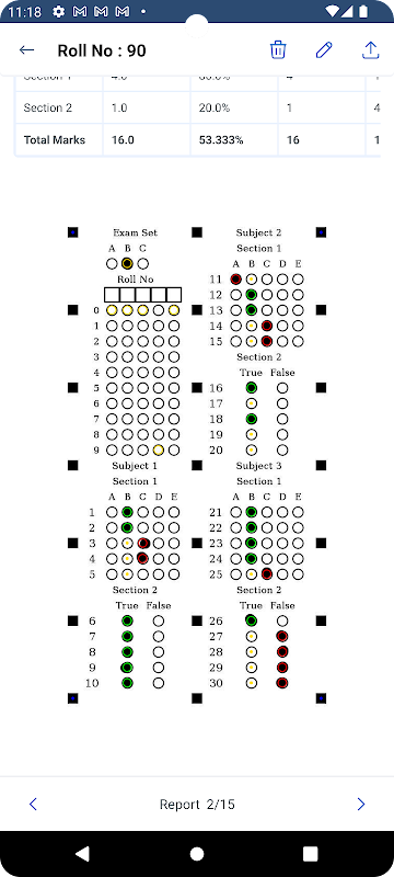 App zal OMR antwoord vellen scannen en het genereren examen rapport als per aangegeven Antwoord