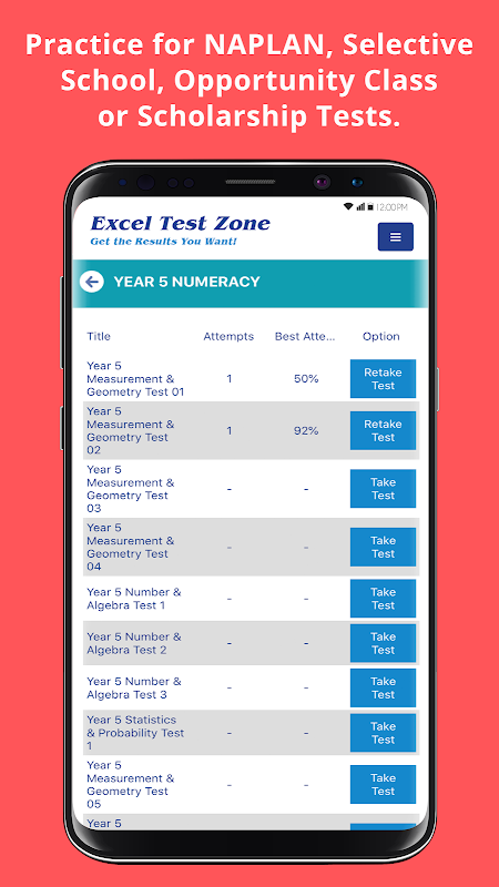 Excel Test Zone is de nummer één online testoefen-app van Australië die studenten helpt zich voor te bereiden op NAPLAN Online, Opportunity Class Tests, Selective School en Scholarship Tests. Het wordt ook het hele jaar door gebruikt voor de algemene praktijk om de belangrijkste vakken te verbeteren en voor te bereiden op schoolexamens!