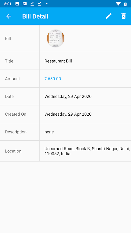 Met Expense Book kunt u al uw uitgaven en rekeningen bijhouden. Het helpt niet alleen om uw uitgaven te beheersen, maar ook om uw geld verstandig te gebruiken. Vooral handig voor kantoren waar u uw facturen onmiddellijk moet indienen.