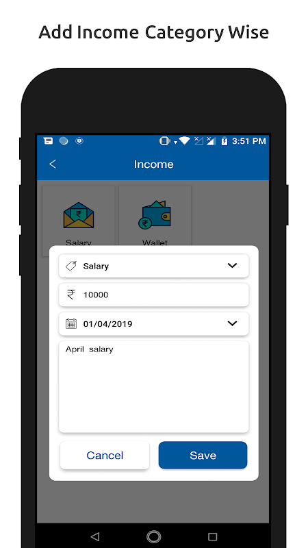- Add Income and Expense in Different Category
