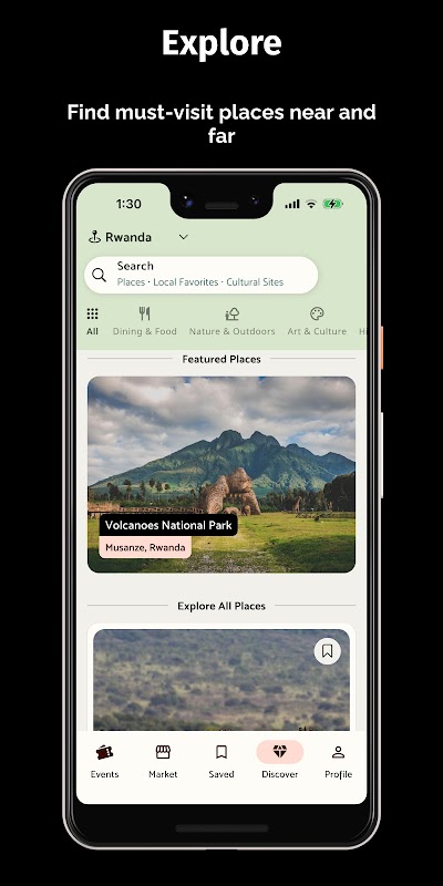 Ontdek moeiteloos evenementen, plaatsen en lokale juweeltjes in heel Afrika.