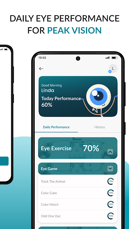Oogtestoefeningen: Oogtestoefeningen zijn ontworpen om uw oogspieren te versterken en uw gezichtsscherpte te verbeteren. Deze oefeningen omvatten oogrotaties, oogstrekking en oogfocus. Oogtestoefeningen kunnen ook gezichtsstoornissen helpen voorkomen en uw algehele gezichtsvermogen verbeteren. Hieronder volgen de oogtestoefeningen die u in deze app krijgt: Preventie van verziendheid en Oogspiertraining.