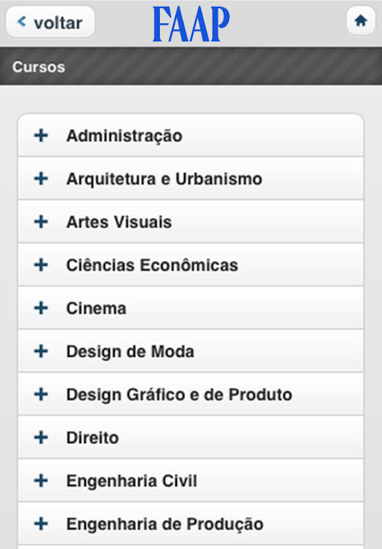 Zoek de beschikbare cursussen, campus kaarten en het Theatermuseum FAAP.