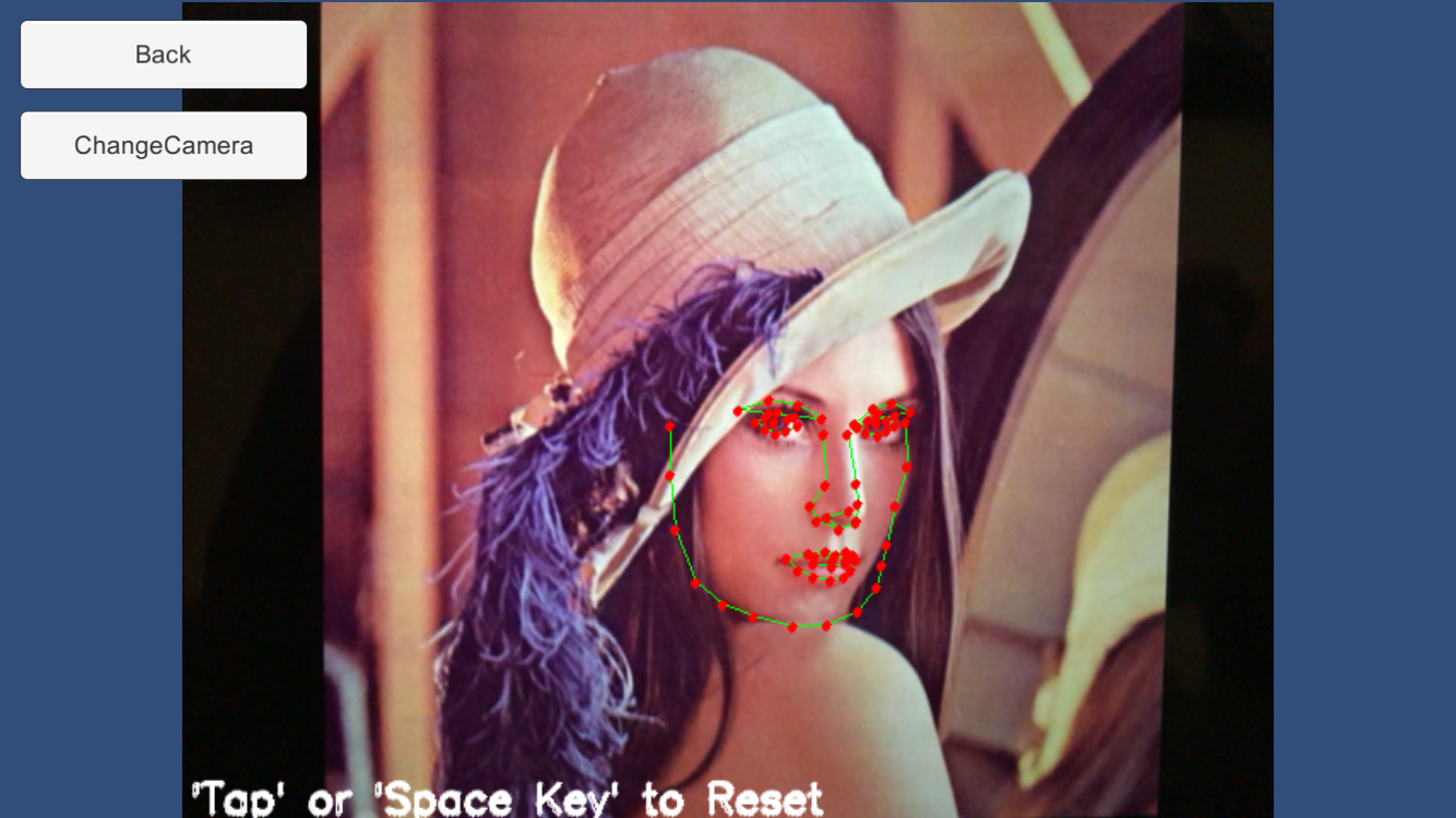 ・Texture2DFaceTrackerExample - By detecting and tracking face from Texture2D, draw face’s points and connections.