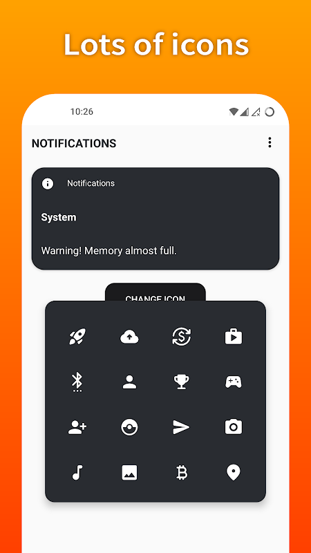 Create unlimited notifications with lots of icons to choose from, make long or short messages with a custom title too. Useful for notifying yourself a reminder for later, creating memes, fake messages, alerts, events, and more!