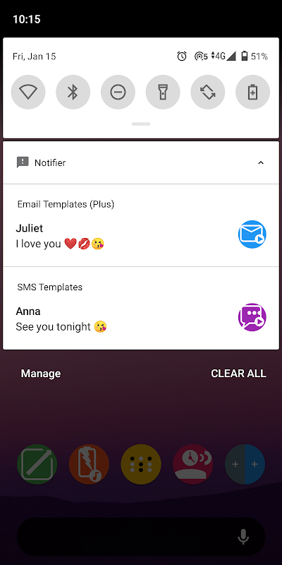 • Maak snelkoppelingen naar uw favoriete apps in de meldingenbalk