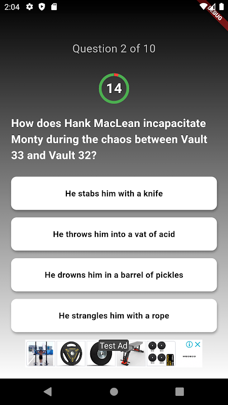 Duik in de post-apocalyptische wereld van Fallout met onze spannende trivia-quiz-app, waarin zowel de populaire tv-series als de legendarische gameseries worden gecombineerd tot één epische ervaring. Test je kennis aan de hand van een breed scala aan vragen over de rijke kennis, gedenkwaardige personages, iconische locaties en spannende avonturen uit het Fallout-universum.