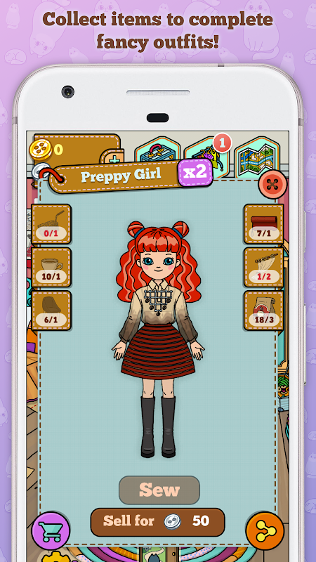 ● Craft new clothes: just tap on the items to complete the necessary combinations!