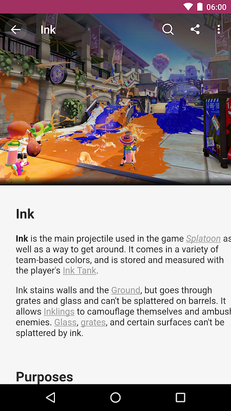 Fandom's app for Splatoon - created by fans, for fans. Fandom apps are always up-to-date with highly accurate, real-time information from Fandom’s vast fan community. The Splatoon app features hundreds of pages of content created by fans just like you. Find in-depth articles on weapons, items, characters, maps, gear, abilities, and much more. No other app offers this amount of accurate insights, tips and information with useful companion features such as: