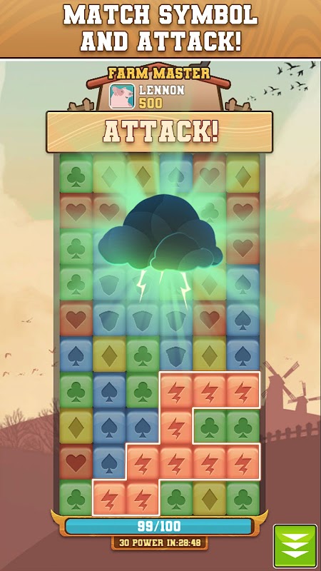 - Match 5 or more ♣ symbol will turn to Attack symbol-Attack other player's farm and get the Prize!