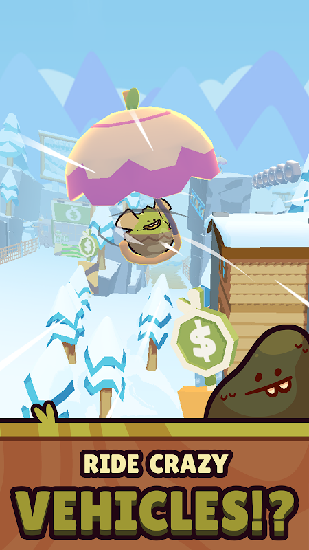 Gebruik eenvoudige veegbesturing om je fruit door een gevarieerd berglandschap te laten stromen - hoe verder je rolt, springt en draait, hoe meer geld je verdient!