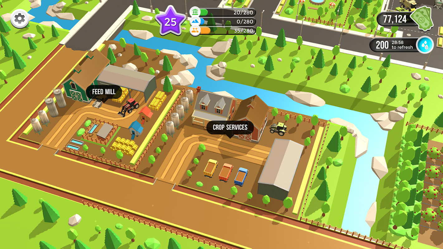 Nu kunt u uw eigen duurzame boerderij creëren en beheren. Zorg voor gewassen; dieren opvoeden; en maak goederen om te verhandelen, verkopen en doneren in uw lokale gemeenschap, terwijl u tegelijkertijd de drie pijlers van duurzaamheid beheert: milieu, economie en sociaal.