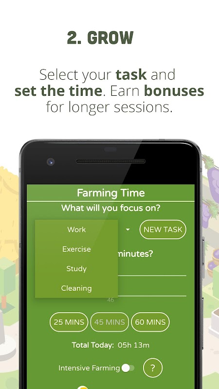 Farming Time is ook een geweldige werk- en studietimer die je motiveert om je gedurende een bepaalde periode te concentreren.