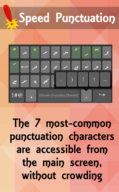 🤯 Typ Thaana-letters sneller door ons unieke multi-tap-systeem te gebruiken. Thaana is heel bijzonder omdat je nooit twee keer achter elkaar dezelfde letter hoeft te typen. Dit betekent dat het toetsenbord extra tikken op dezelfde toets kan interpreteren als een oproep voor de volgende letter in de groep voor lang indrukken van die toets. U hoeft niet te worden vertraagd door een Shift-toets of lang ingedrukt te houden.