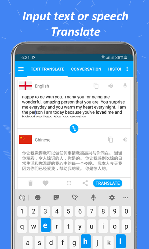 Snelle, eenvoudige taalvertaler-app met gesproken spraakgesprekken in meer dan 90 talen. Vertaal ook al uw zinnen volledig.