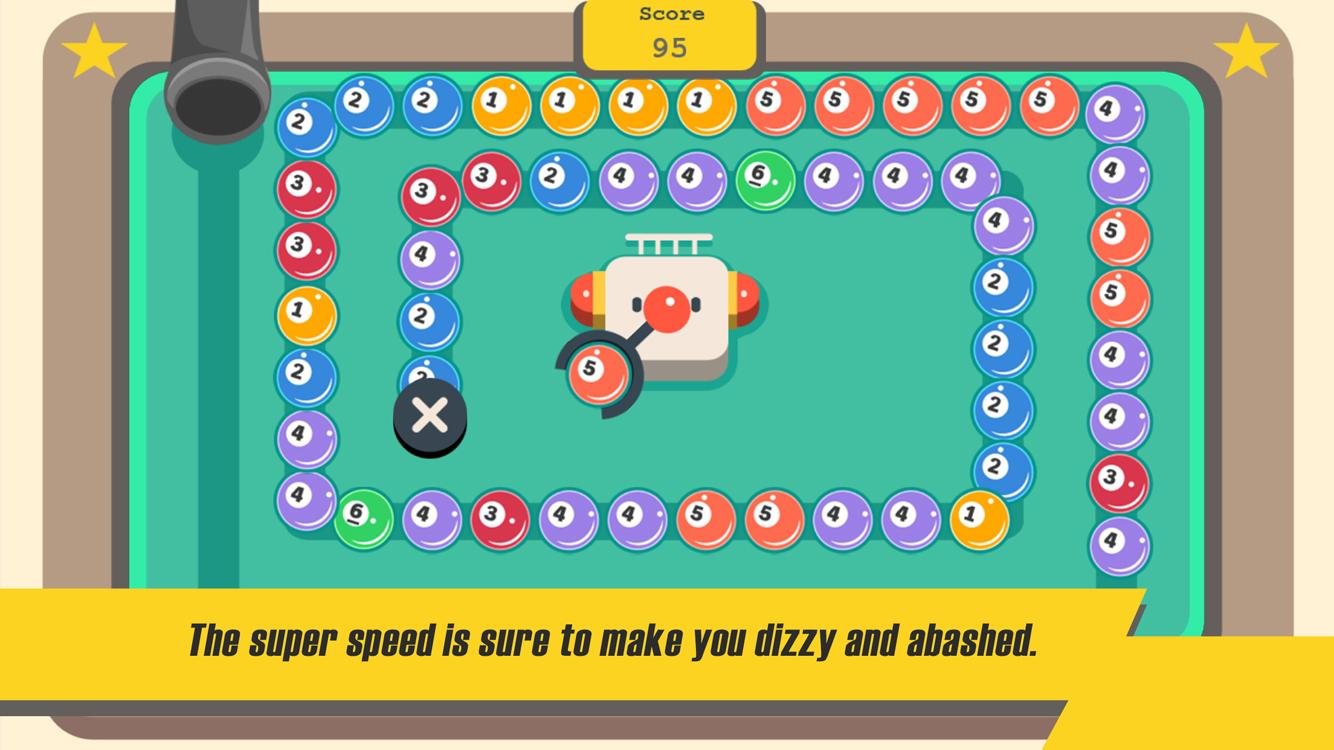 The sole task in this game is to survive at extremely fast speed train of billiards balls. The super speed is sure to make you dizzy and abashed. So, just take a deep breath, step into the full speed game and get as many scores as possible.