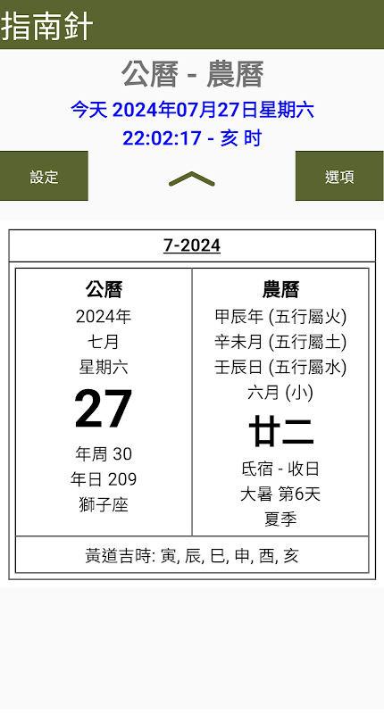Deze applicatie kan de kompasrichting en de maankalender controleren.