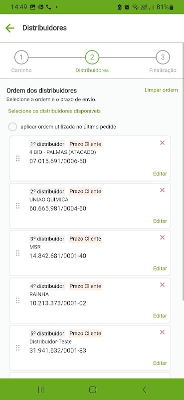 Versão inicial do aplicativo