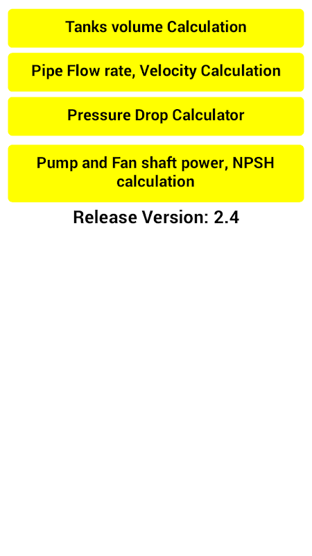 Applicatie biedt u de rekenmachine voor verschillende berekeningen zoals volume, oppervlakte, leeggewicht, hydrostatisch gewicht voor verschillende tanks. het biedt u ook de flitsstoomberekening, pompasvermogen, pijpstroomberekening, drukval, koeltoren, kleppen, opening enz.