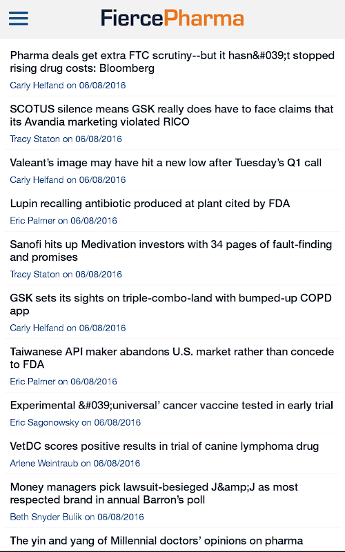 Every business day, FiercePharma updates pharmaceutical executives on company news & earnings, FDA regulations, drug safety, generic drug