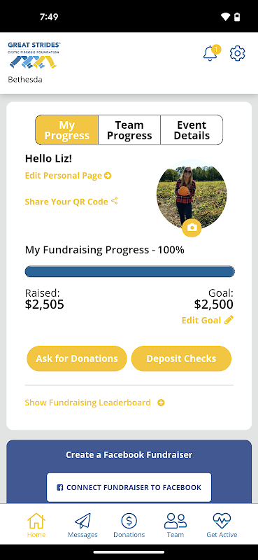 Nu kunt u geld inzamelen om cystic fibrosis te helpen bestrijden, CFF te ondersteunen en uw voortgang naar uw doelen altijd en overal te controleren.