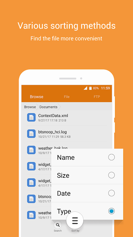 This is a simple and convenient file manager, whether the file is in mobile phone, or SD card, users can quickly find the right categories, and the file is easy to copy, paste, cut, rename, search, share, etc.