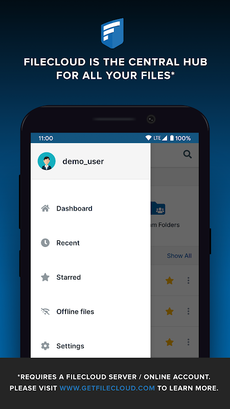 FileCloud biedt naadloze mobiele toegang tot de bestaande netwerkshares in uw organisatie. Maak de bestaande bestandsshares van uw organisatie direct op afstand toegankelijk. Gebruikers hebben altijd en overal toegang tot hun bestanden. Open onmiddellijk documenten, bestanden en mappen die zijn opgeslagen op uw Enterprise FileCloud. Ervaar snelle, gemakkelijke en veilige toegang en de mogelijkheid om bedrijfsbestanden en documenten te delen met Android-apparaten.