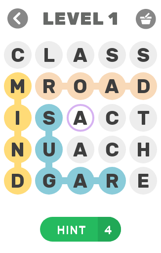 The goal of this word puzzle is using the given letters, combine them and make them into a word. Just the thought to slide your finger to connect the letters to combine a correct word! When hidden words found, you can use the clue to help finding other words and solve the word puzzle.