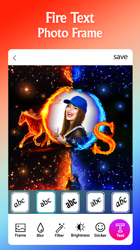 Fire Text-fotolijst is een fotobewerkings-app met framestickers en vuureffecten