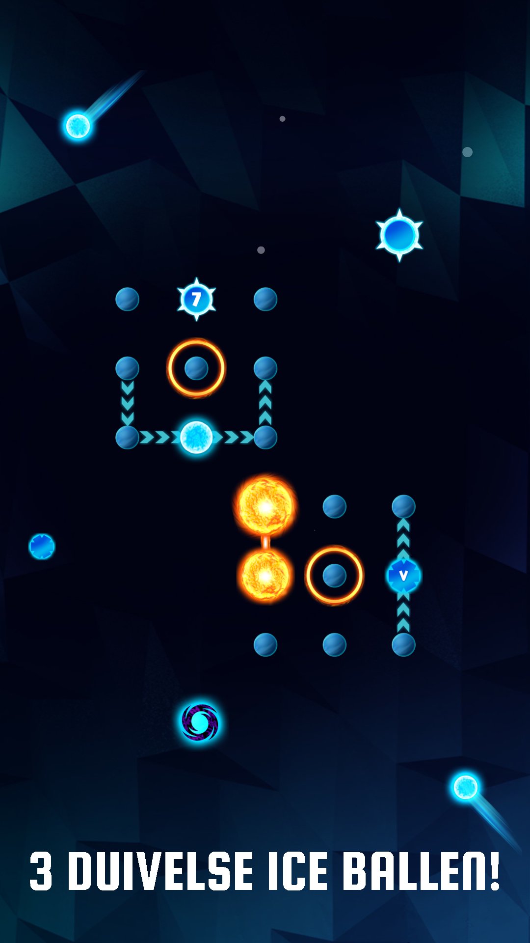 Terwijl je de punten verbindt, doelenwitten activeert en levels oplost, krijg je een onkwetsbaarheidsschild. Dit schild is verlicht! Heb je een ijsbal geraakt? Blijf kalm! Het schild is actief en het beschermt je. Het is jouw beurt om ze de ruimte in te sturen.