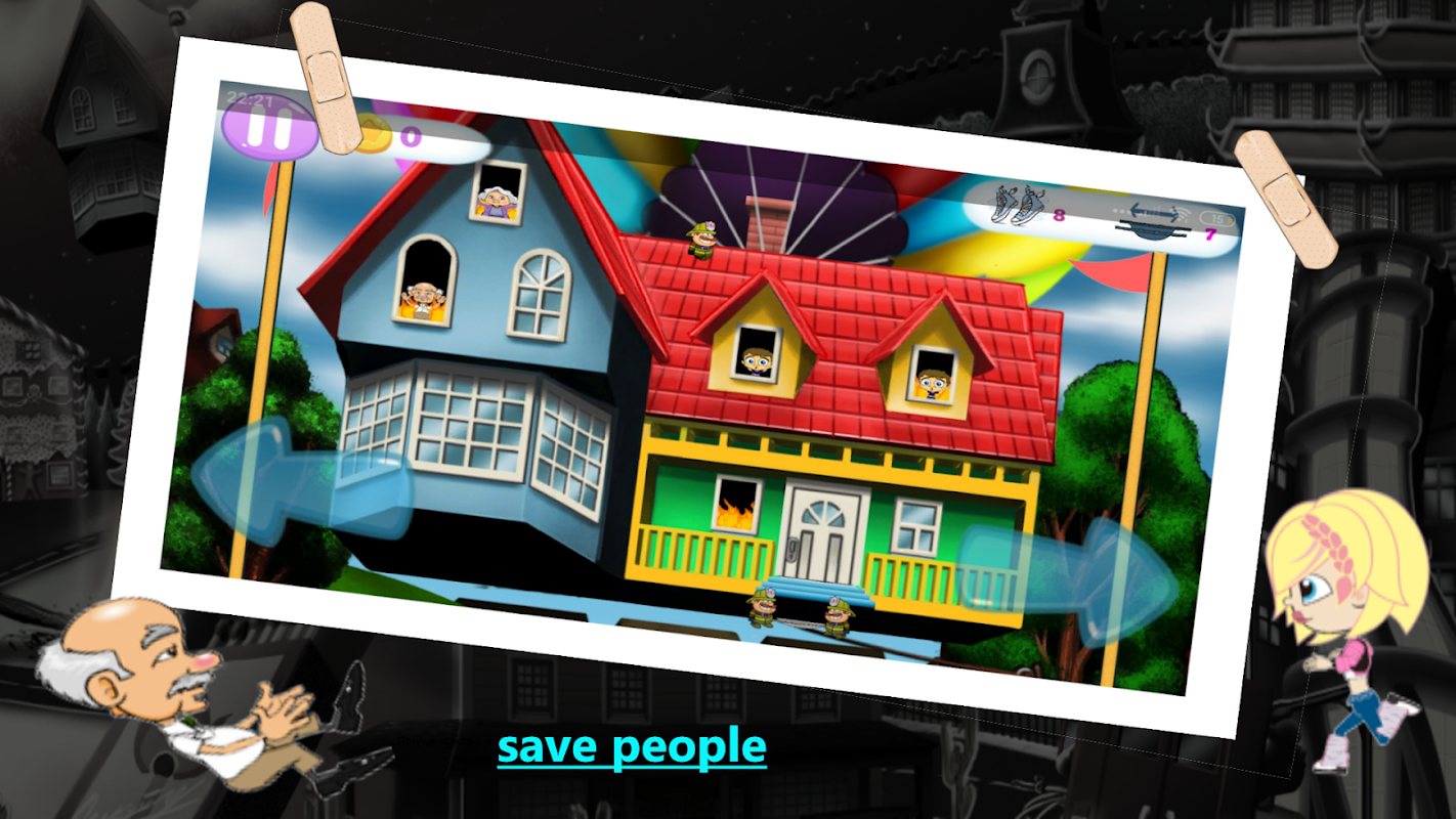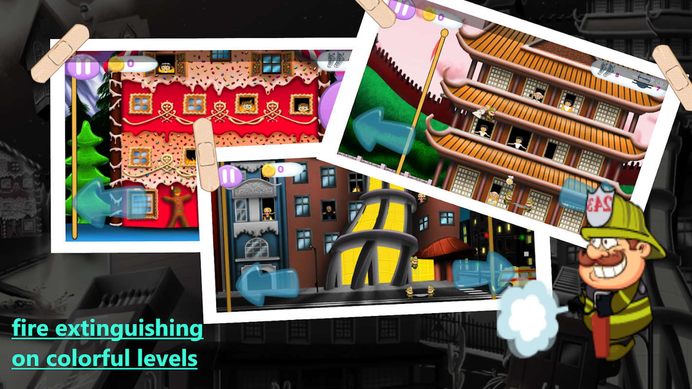 De game heeft een heel eenvoudige bediening: brandweerlieden worden bestuurd door twee pijlen aan de randen van het scherm. Geschikt voor kinderen vanaf 5 jaar.