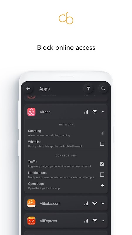 Firewall zonder root. Beheer internettoegang per app en bescherm je privacy.