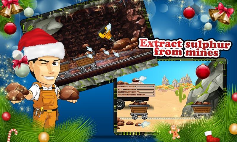 In second step you need supply of cracker powder. Go to the mines under the big mountain to extract the sulfur rock. Use different construction machines and tools to cut the rock and load it on the delivery vehicles and trucks. Drive the rocks to the factory and grind them to make the powder for fire crackers.
