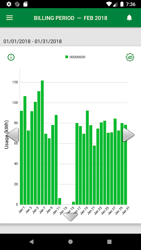 Bekijk energiegebruiksgrafieken om uw unieke gebruikstrends te identificeren. U kunt snel door grafieken navigeren met behulp van een intuïtieve op gebaren gebaseerde interface.