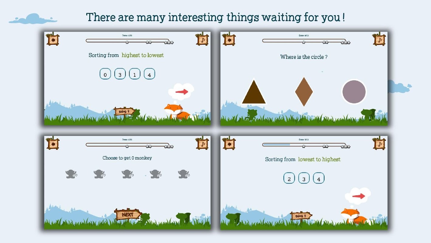 * Grade 1 Math application includes 2 main parts: the lesson and the results tracking