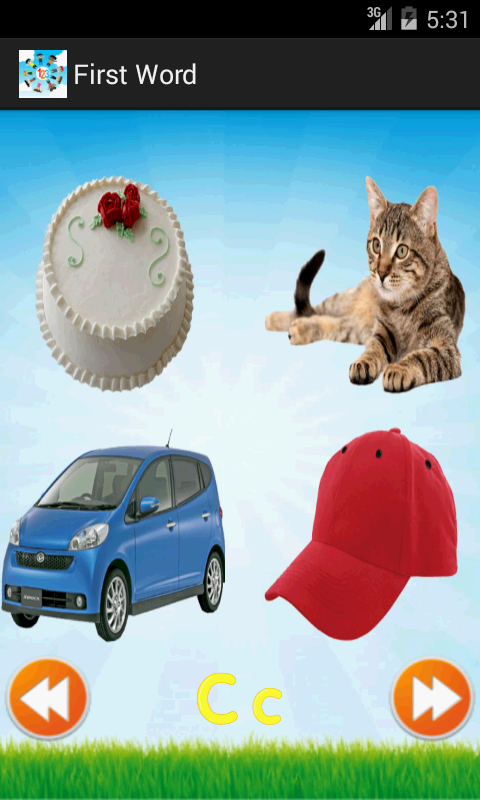 This application is very useful for the kids ( Age group of 2-4 years ) who has just started learning ABCD alphabets. It has alphabets in capital letter as well as in small letter. This application has four parts. The first screen will list all the alphabets with image. Clicking on any letter will self speaks the Alphabet .This application also helps your child to speak English alphabets.