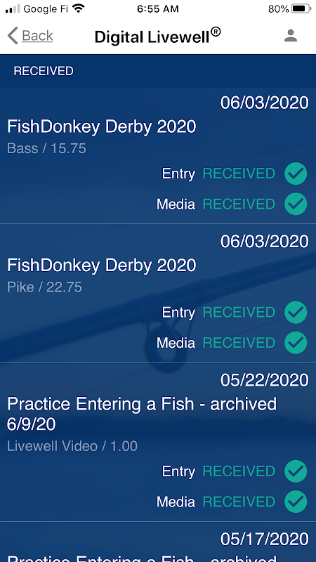 Creëer en voer vistoernooien uit op een mobiele telefoon: vangen en loslaten, traditionele toernooien op gewicht of lengte, bracket (play-off-stijl) head-to-head-toernooien, meerdaagse (dag 1 + dag 2 + dag 3), op punten gebaseerde toernooien, foto- of video. Dit is het beste en gemakkelijkste platform met de meeste mogelijkheden om je evenement te organiseren. FishDonkey is de toekomst van Tournament Fishing®.