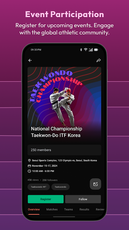 Bekijk live competities met live wedstrijdresultaten en competitie-updates rechtstreeks op uw apparaat! Maak verbinding en blijf in contact met organisatoren van evenementen om het laatste nieuws en wijzigingen op uw apparaat te ontvangen. Volg elk sportevenement als nooit tevoren!
