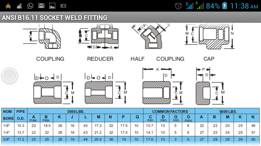 De applicatie is zeer nuttig hulpmiddel voor ingenieurs die zich bezighoudt met pijpen, flenzen en hulpstukken afmetingen er van dag tot dag leven. De app is met de afmetingen van vele verschillende standaard en materiaalsoort zoals hieronder weergegeven:
