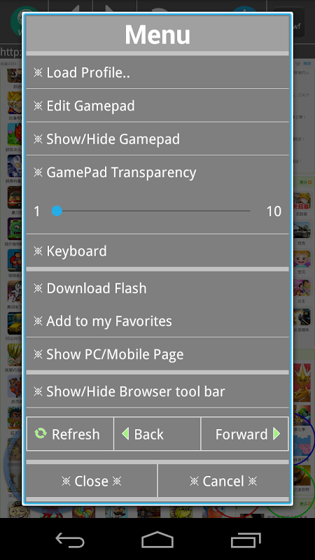 4. Terwijl je speelt flash game kun je gamepad stijl of verborgen gamepad of zelfs geopend soft keyboard te schakelen.